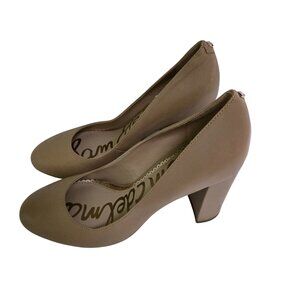 Sam Edelman Stillson Tan Leather Round Toe 3.5" Block Heel Pumps Size 6M