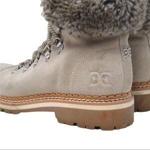 Sam Edelman Suede Bowen Boots, Faux Fur Top - Light Gray, Size 7-1/2