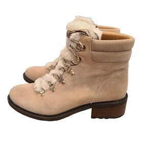 Sam Edelman Suede Lace-up Boots with Faux Fur Detail, Size 7