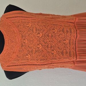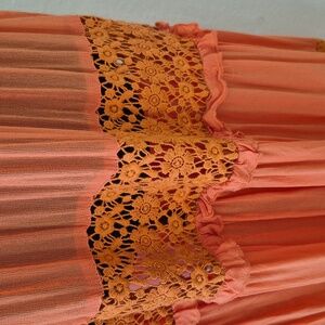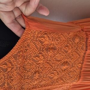 This elegant burnt orange lace maxi dress is perfect for any occasion. The intricate lace detailing adds a touch of sophistication. Stand out in style with this vibrant piece.