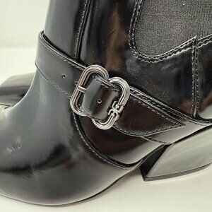 Sam Edelman Suzette Chelsea Boot Patent Leather Women 8 Black Heeled Buckle NWOB