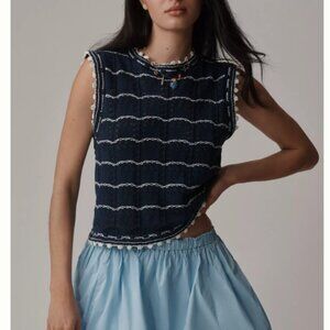 Sam Edelman Sweater Tank Womens XS Navy White Willa Knit Tank Anthropologie