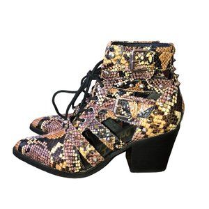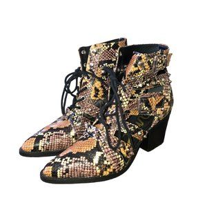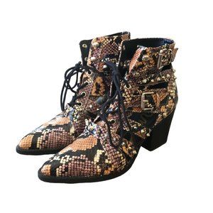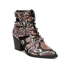 Sam Edelman Sz 7.5 Elana Leather Peach Snake Python Pointed Cutout Studded Boot