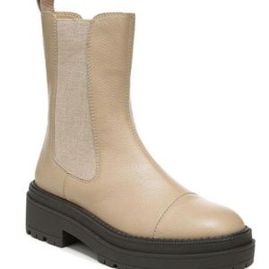 Stylish tan ankle boots with a chunky black sole. Perfect for casual wear.