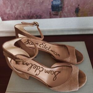 Sam Edelman Tan Suede Block Heel Sandals - Size 8.5