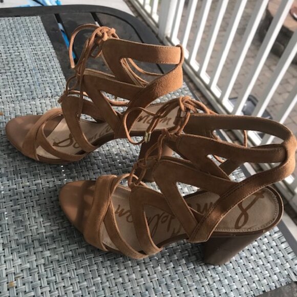 Sam Edelman Tan Suede Lace Up Heels, Size 8, 4" Heel, Great Cond.