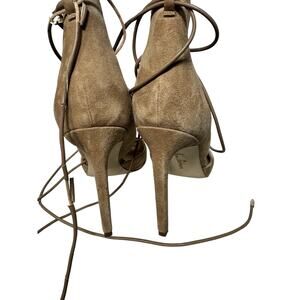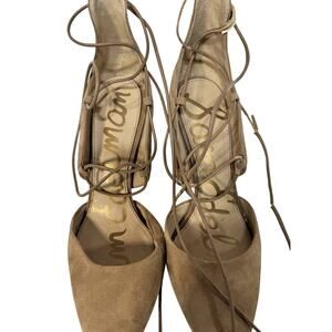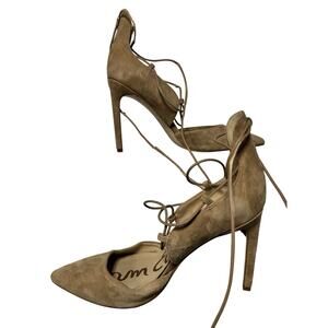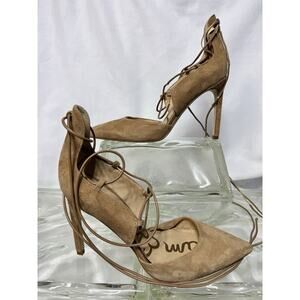 Sam Edelman Tan Suede Lace-Up Heels Size 8 Pointed Toe Stiletto Pumps