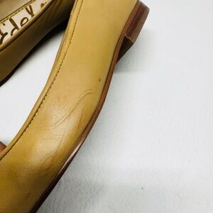 Stylish Sam Edelman flats. Tan body with black toe. Gold buckle detail. Perfect for any occasion.