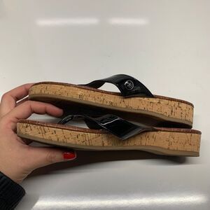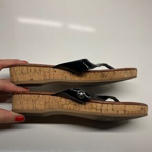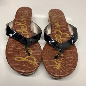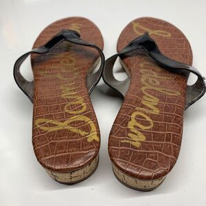 Sam Edelman Tanya Cork Wedge Sandals Women Size 6.5 Black Brown Thong Flip Flops