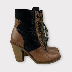 Sam Edelman Tara Brown Leather Shearling Heeled Boots Size 7.5