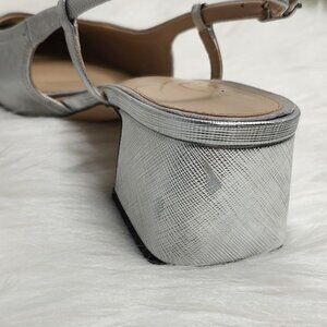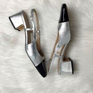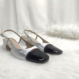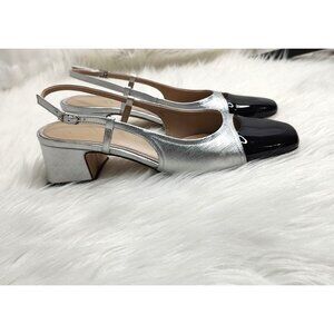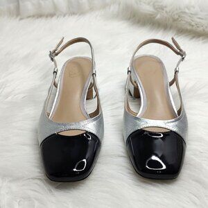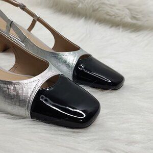 Sam Edelman Tarra Slingback Pump Heels Cap Toe Metallic Silver Black 9.5