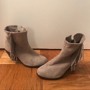 Sam Edelman Taupe Fringed Suede Ankle Boots Sz 7.5