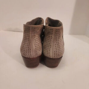 Sam Edelman Taupe Pipp Suede Perforated Chunky Heel Ankle Booties in Size 6