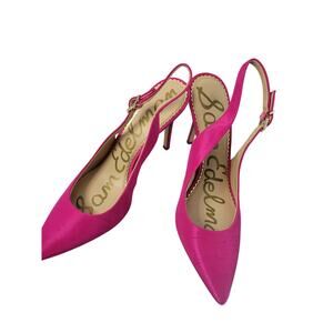 Bring bold energy to your next big moment in these striking hot pink slingbacks by Sam Edelman. Crafted in luxe silk-like fabric with a sharp pointed toe and elegant slingback strap, these heels are both fierce and feminine. Perfect for commanding attention at a conference, cocktail hour, or photoshoot—especially when you never back down from color or confidence.