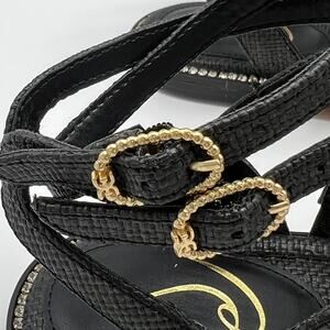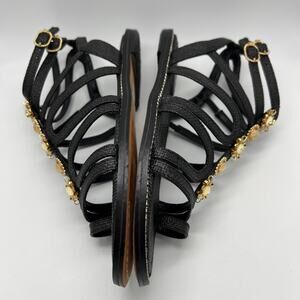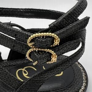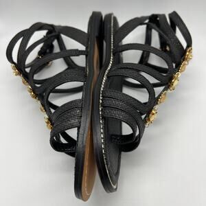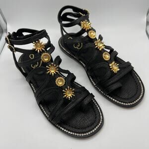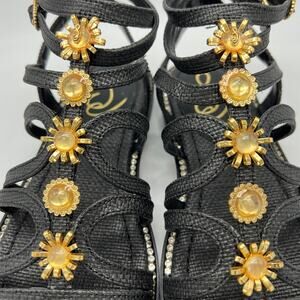 Sam Edelman Tianna Women's Gladiator Sandals Size 8 Gold Charm Black Woven Shoes