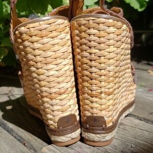 - Basketweave detailed wedge heel and platform with bottom leather and braided stripes