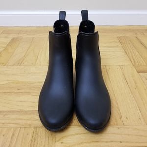 This sleek matte rain boot channels classic Chelsea style while providing carefree puddle-jumping ease.