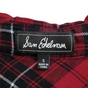 Sam Edelman Top Small Red Plaid Hi Lo Button up Roll Tab Sleeve Zip Back Blouse