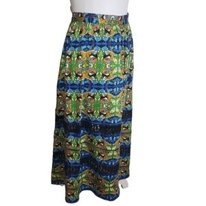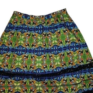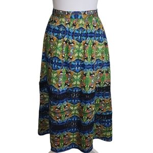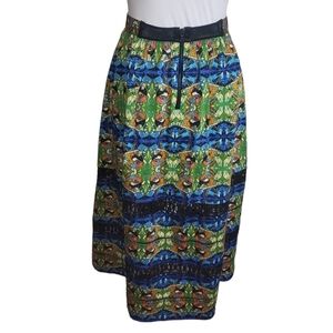 Sam Edelman Tulum Parrot Print Midi Skirt Size 12 Crochet Panels Bird Rockabilly