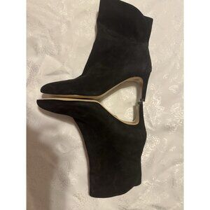 Sam Edelman Usha 8.5 Black Suede Kitten Heel Pointed Toe Leather Ankle Boots NEW