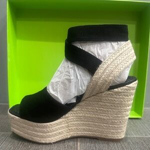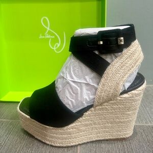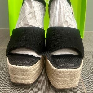 Sam Edelman Vada Espadrille Platform Wedge Black Linen Size 7 BNIB~NEVER WORN