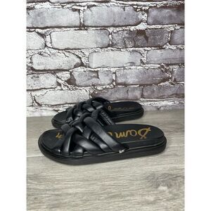 Selling Sam Edelman Vaugn Black Leather Braid Casual Slides Sandals Women Sz 7M US/38EU
