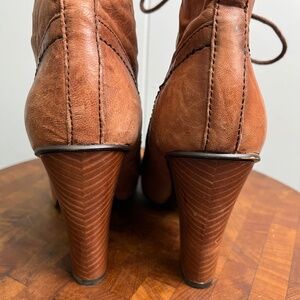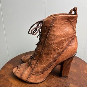 Sam Edelman Venice Brown Leather Peep Toe Lace Up Booties Size 8M