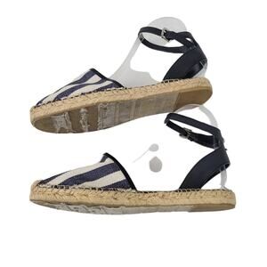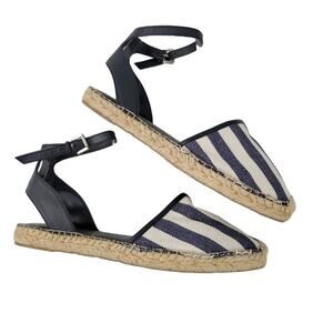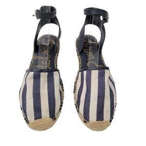 Sam Edelman Vivian Closed Toe Espadrille Size 8.5 Blue Cream Stripe Ankle Strap