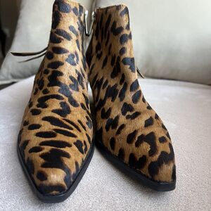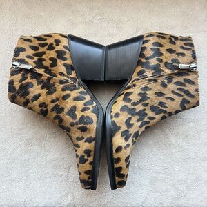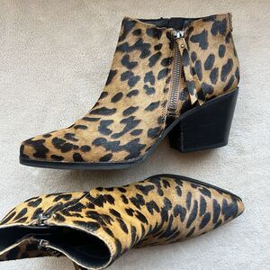 Sam Edelman Walden Leopard Fur Block Heel Ankle Boot Bootie Women 7 Animal Zip