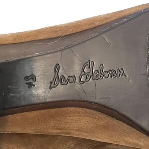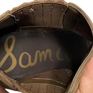 Brand markings: Sam Edelman script logo on outsole and footbed; metal SE button at heel tabs.