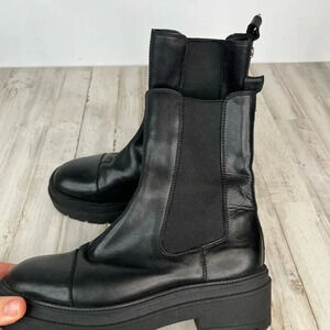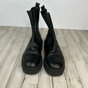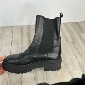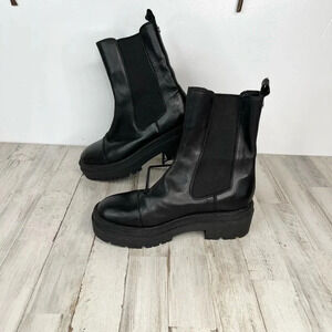 Sam Edelman Wellington Black Lug Sole Booties Size 5.5 Pull-On Elastic Sides