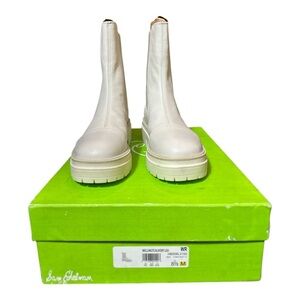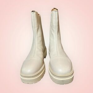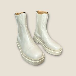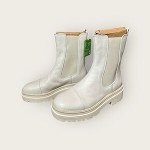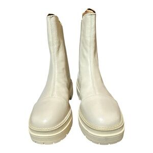 Sam Edelman Wellington Ivory Leather Lug-Sole Chelsea Boots 8.5W Water-Repellent