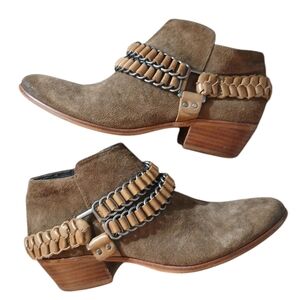 Sam Edelman Western Booties Brown and Tan Harnessed Ankle Boots Size 7