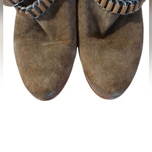 Step out in style with these Sam Edelman ankle booties, crafted in a sophisticated brown suede. The standout chain harness adds a unique touch, and a western feel, while the low chunky heel ensures comfort for all-day wear. Perfect for any occasion.