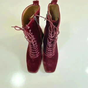 Sam Edelman Westie Brick Velvet Size 6 Chunky Heel Squared Toe Lace Up Boots