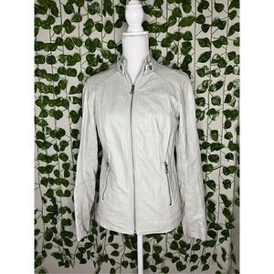 Sam Edelman White Cream Full Zip Faux Leather Biker Jacket Size Small