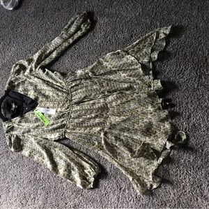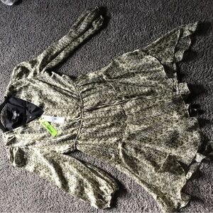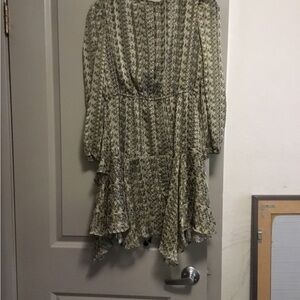This elegant Sam Edelman dress features a wrap design with a charming ruffled hem, perfect for a wedding guest or cocktail occasion. The long bishop sleeves and V-neckline add a touch of sophistication, while the tie front accentuates the waist for a flattering fit.