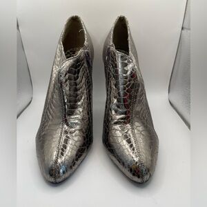 Sam Edelman Whitely Spike Silver Patent Leather Faux Snake Skin Heel Whimsical 8