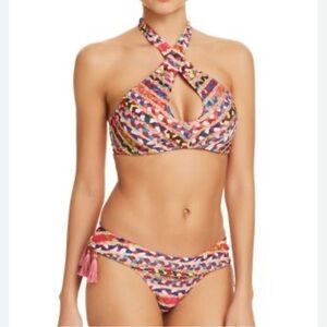 Sam Edelman Wireless Bikini Swim Top And Bottoms S Front Cross Keyhole Raffia