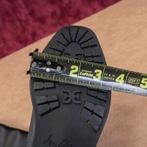 New Condition. No signs of wear on the soles. Never-Worn. Regular Calf Fit. Retailed for $250. Made in India. Model #Drina. Leather upper, Fabric lining and Lug Rubber soles. Partial Side zipper for closure easy on and off. Almond Toe. SKU 11081
