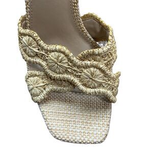 Sam Edelman Womans Natural Block Heel Ankle Strap Square Toe Woven Heels Sz 8.5