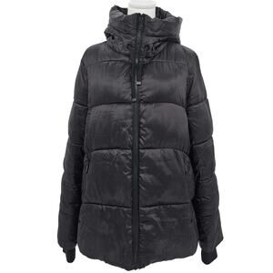Sam Edelman Womans size L Hooded Funnel Neck Black Puffer Coat Zip Front Closure