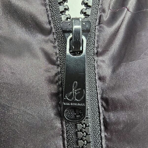 Sam Edelman womans size Large hooded funnel neck black puffer coat thumb holes at sleeve 2 slash pockets with zippers zip front closure size by measurements no size tag please check measurements before purchasing good preowned condition has some wear