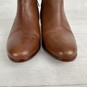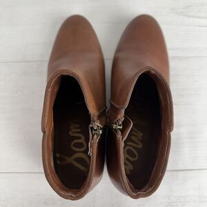 Sam Edelman Women 7 Petty Boots Brown Leather Bootie Block Low Heel Side Zip