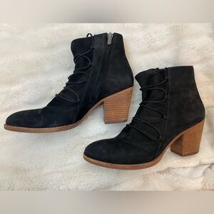Sam Edelman Women 8.5M Millard Black Suede Lace Up/Suede Zip Ankle Booties