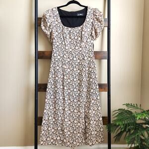Sam Edelman Women Beige/Black Ditzy Floral Midi A-line Summer Dress Size US 2