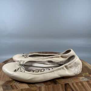 Sam Edelman Women Felicia Ballet Beige Leather Flats Sz 6.5 M