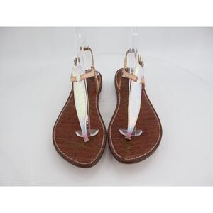 Sam Edelman Women Gigi Sandal Size 9.5 Thong Slingback Silver Snakeskin Leather