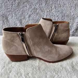 Sam Edelman Women Petty Side Zip Suede Blocked Heel Ankle Booties Size 8.5 Taupe