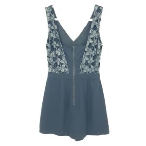 Sam Edelman Women's Size 2 Shorts Romper Black Faux Leather Floral Lace Club Rave Night Out. Great used condition, no known flaws. Super cute! Fun low cut and zipper in the back.